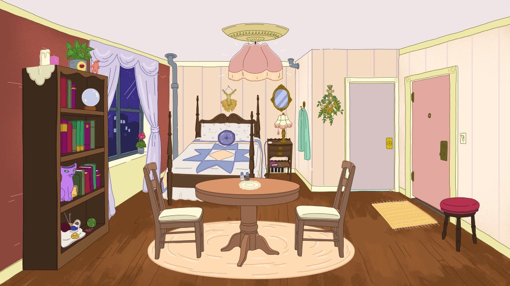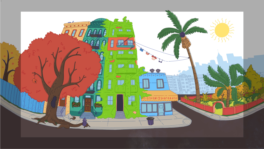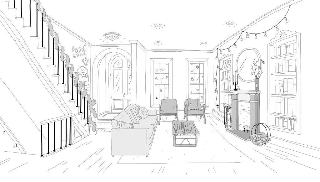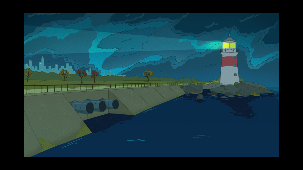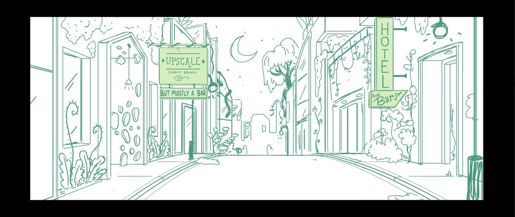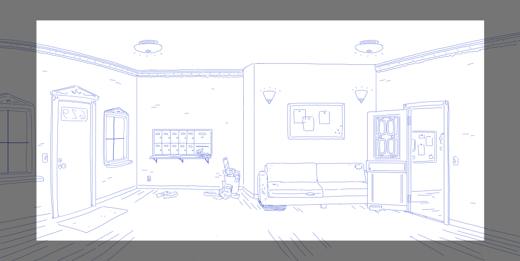 Duties: Background design, clean up, and color. Managed and helped guide BG team with draw overs, checking for style adherence, consistency, color, texture, and perspective.